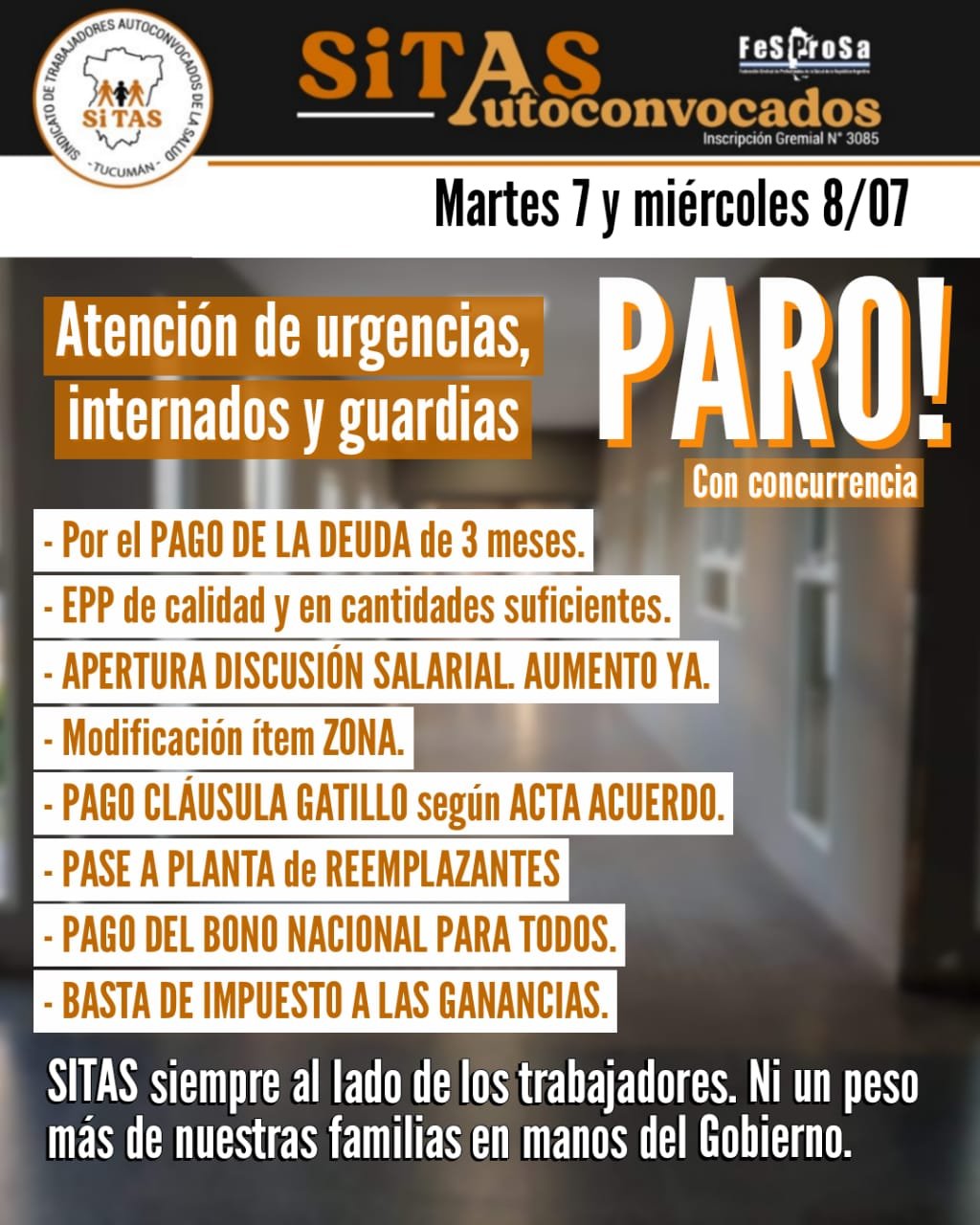 La medida de fuerza será con asistencia al lugar de trabajo este martes 7 y miércoles 8 de julio.