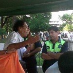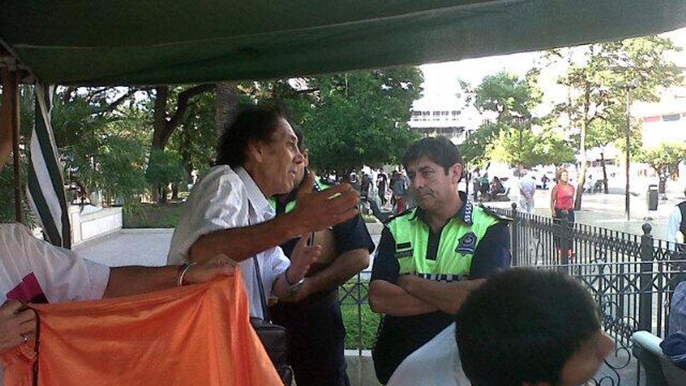 TENSIÓN. La Policía trató de impedir que se monte la carpa en el paseo público.