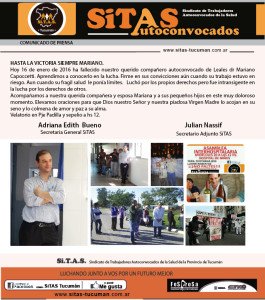 Hoy 16 de enero de 2016 ha fallecido nuestro querido compañero autoconvocado de Leales dr Mariano Capoccetti. Aprendimos a conocerlo en la lucha. Firme en sus convicciones aún cuando su trabajo estuvo en riesgo. Aun cuando su fragil salud le ponía límites. Luchó por los propios derechos pero fue intransigente en la lucha por los derechos de otros.